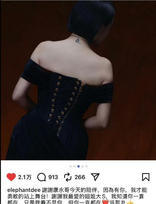 当然,除了在场上说的这些“真心话”以外,小S还另外有“惊喜”。 在她脖颈后方新刺了一个“媛”字,这是由好友范晓萱协助刺青的,为的是纪念自己的姐姐徐熙媛。 至于为什么要纹在后脖子上,让姐姐骑自己脖子,而不是放在手心或者心口。 这里就不知道了,可能当地有什么讲究吧。